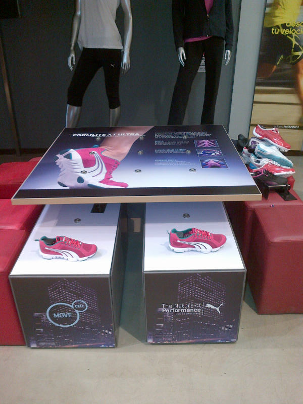 Impresión, producción gráfica, ploteo de vidrieras e interior para promocionar nueva gama de productos. La decoración se realizó en diversos locales Puma dentro de C.A.B.A, GBA e interior del país.