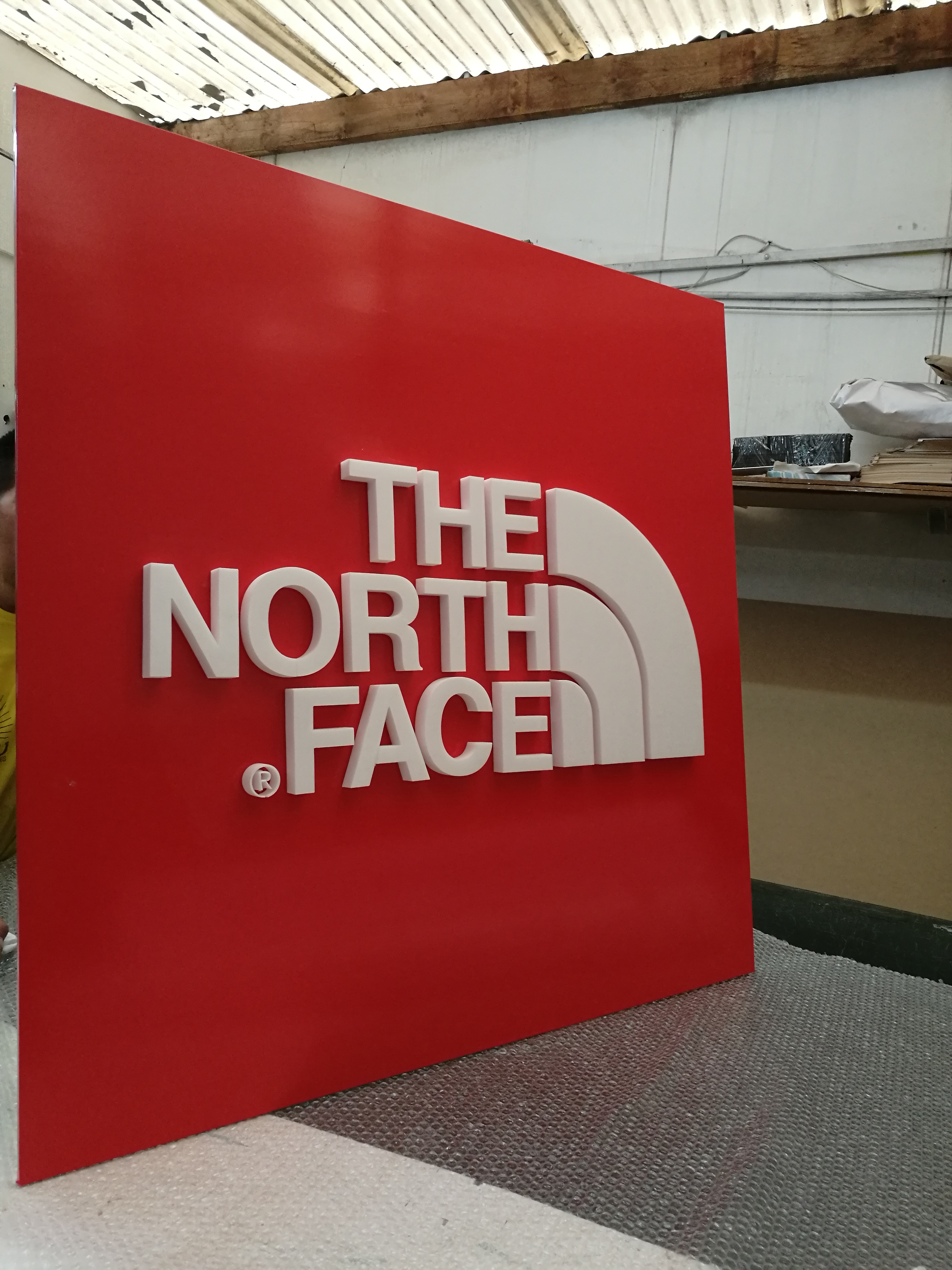 Decoración de local The North Face, incluyendo corpóreos para exterior, ploteo y gráficas. Cliente: The North Face Fecha: - Categoría: Producción Gráfica / Instalación