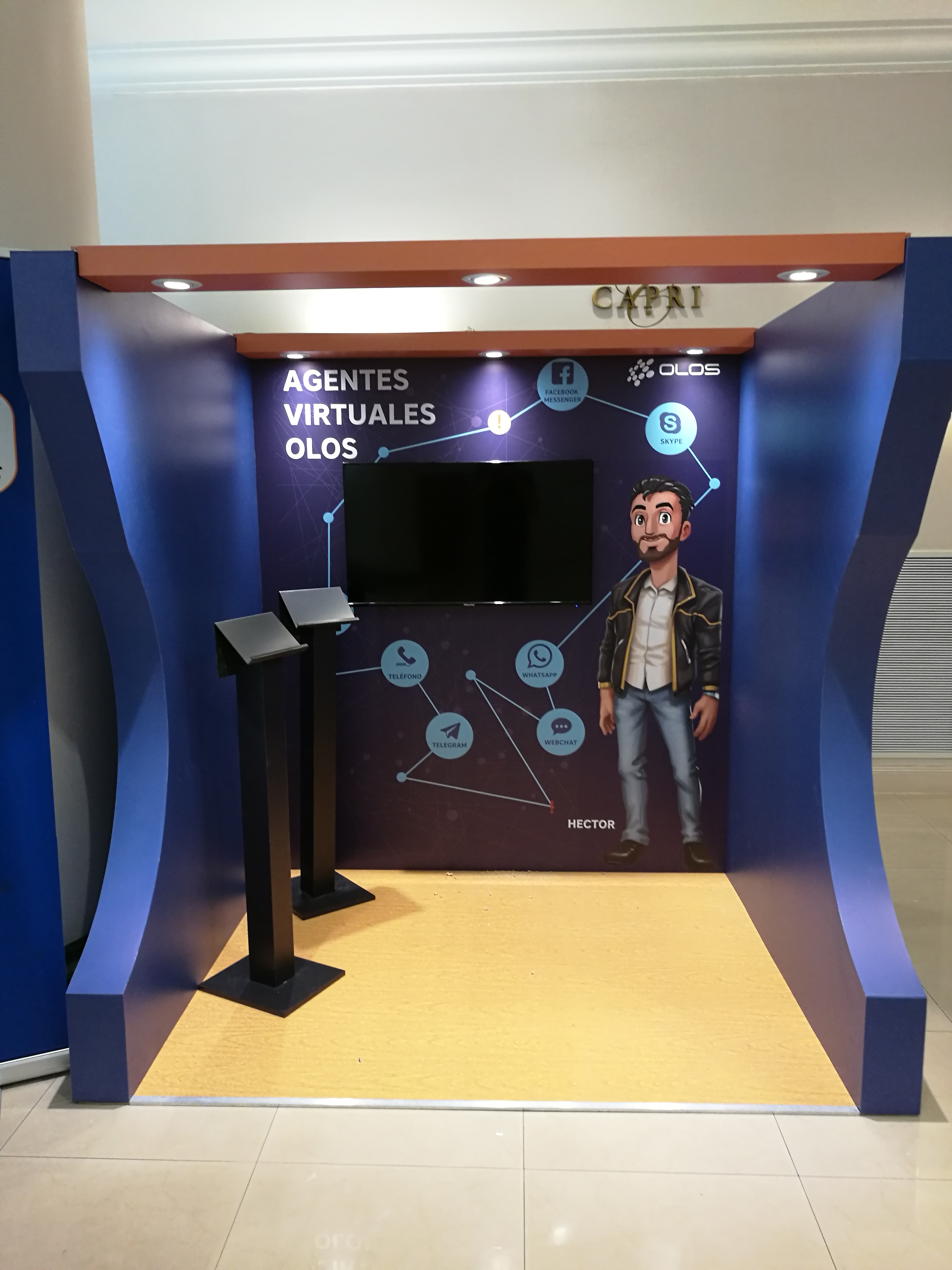Impresión, producción gráfica y realización de módulo para Agentes Virtuales OLOS Cliente: Olos Fecha: - Categoría: Impresión / Producción Gráfica / Instalación